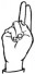 На ћирилици написано ДАМЈАН ШИМПРАГА састоји се из 14 слова [?]. Исписано ћириличном једноручном азбуком за глувонеме: